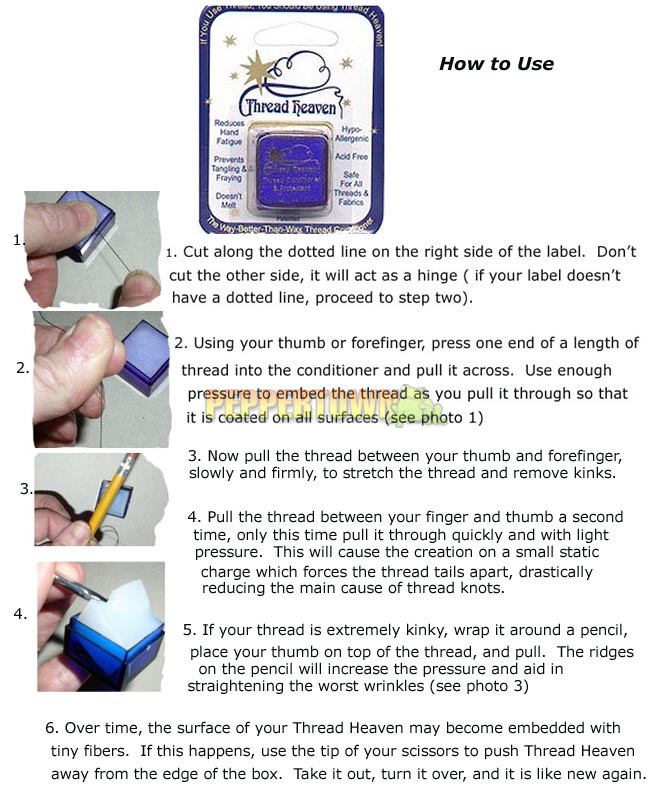Thread Heaven has been replaced with Thread Magic. Thread Magic is a thread conditioner designed to make stitching easier by reducing thread tangling and friction. Thread Magic is made of neutral compound that will not damage thread or fabric of almost any type. Comes in its own handy little blue plastic pot to keep it clean and tidy.