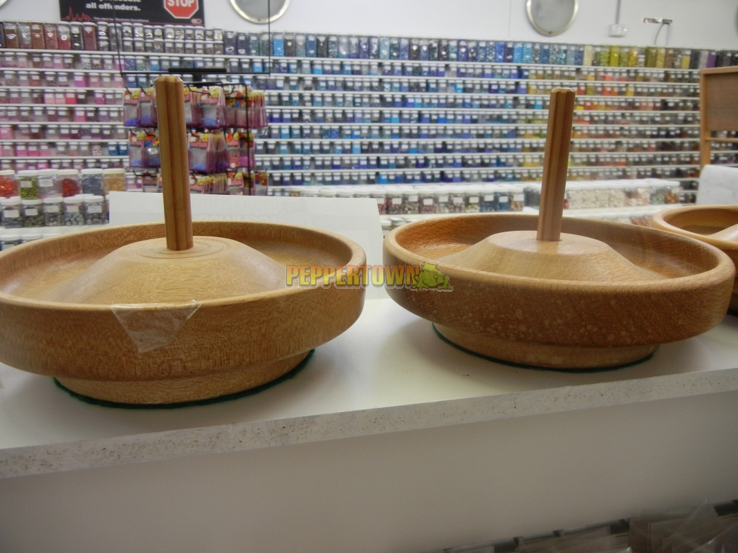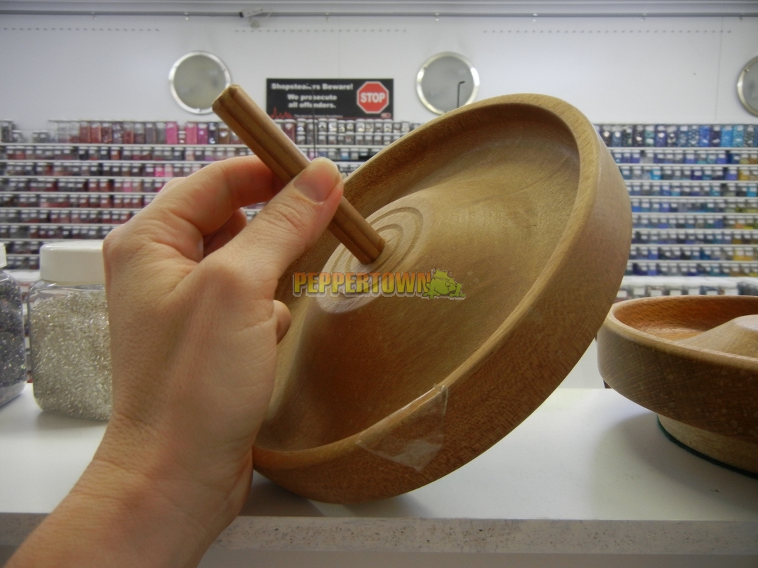 Simply fill the wooden bowl with beads and spin.