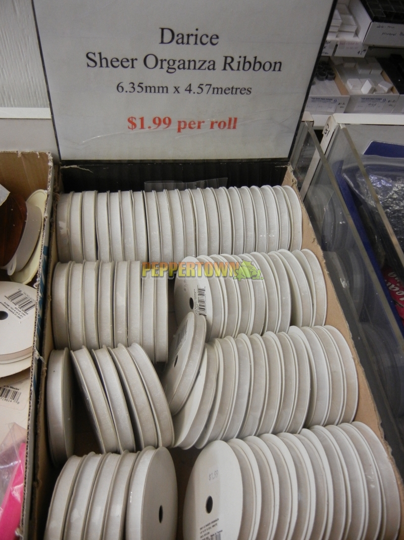 Deeply discounted price per roll of Sheer Organza Darice Ribbon.