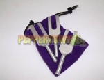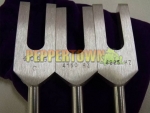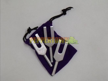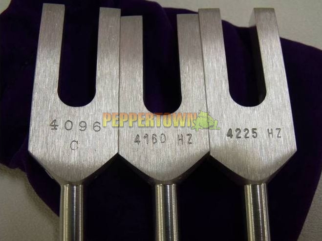 After meditation or massage, gently tap the Angel Tuners. You do not have to hold them directly in your ears. Tap them gently three inches to several feet off the cranium and move them around. They can be held in specific areas of sutural restrictions, internal bone rotation, or energy conflict. The pulsating beats between the tuning forks will be apparent to the listener's ears.