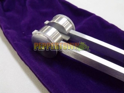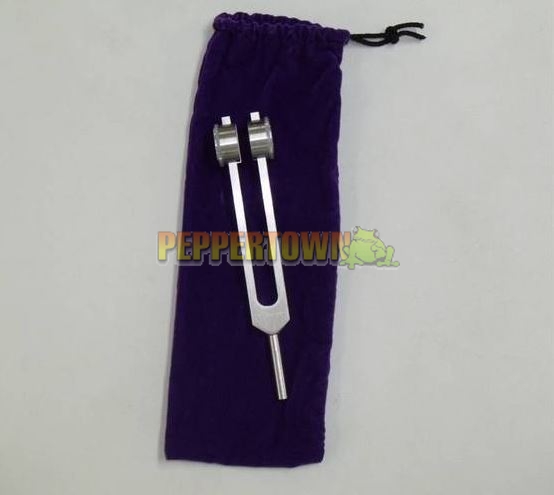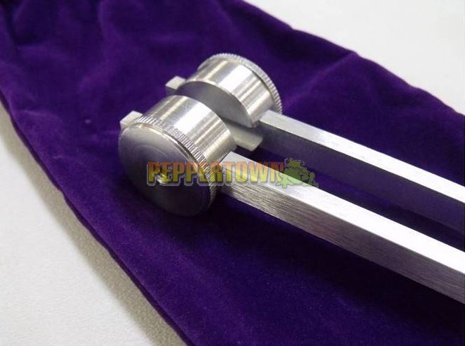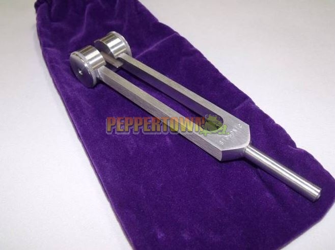 Hold your Om tuning fork by the stem between your thumb and first finger. Do not apply a lot of pressure. Gently tap the weights on your knees, tapping pad, or palm of your hands. This will set the weights in motion and create a clear, deep and sustained tone. Bring the double-pronged side of the OM fork about an inch from your ear(s) and adjust the distance for volume.