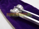 You can use your Om fork directly on the body and acupressure points by tapping your fork in the same way. With the finger or thumb of your free hand, locate the spot on the body where you want to place the tuning fork, then tap your fork and press the single end of the fork’s stem onto the spot. Make a firm contact and hold the tuning fork until you feel the vibrations stop. The Om fork is especially effective when placed on the rib heads, thoracic vertebra, sternum, sacrum and illiums. For example, tap the Om fork and press it to your sternum. Close your eyes and feel the vibration. After a while hum “Om” in resonance with the vibration. Another way to use your Om fork during bodywork sessions is to apply it to the spinal processes of the back and/or directly onto the sacrum (or any bone in the body you wish to bring the harmonic resonance of the Om vibration.)