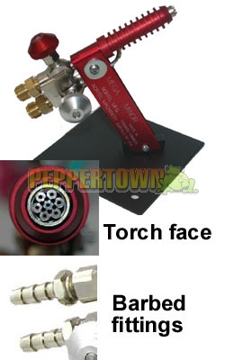 Use to create multiple beads quickly, or form hollow core vessels and sculptural beads beyond your wildest dreams. Torch includes threaded fittings to connect 1/4" hoses.