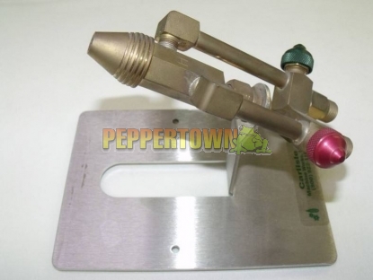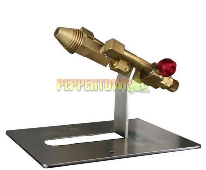 The body of the mini CC is constructed of brass and has cooling fins cut into its profile to help protect the burner from heat build-up. The tube matrix, which is constructed of seven tubes, is made of stainless steel. The connection of the body to the stand is made with a ball joint, allowing for an increased or decreased tilt of 15 degrees and articulation. This allows the burner to have excellent positioning capabilities.